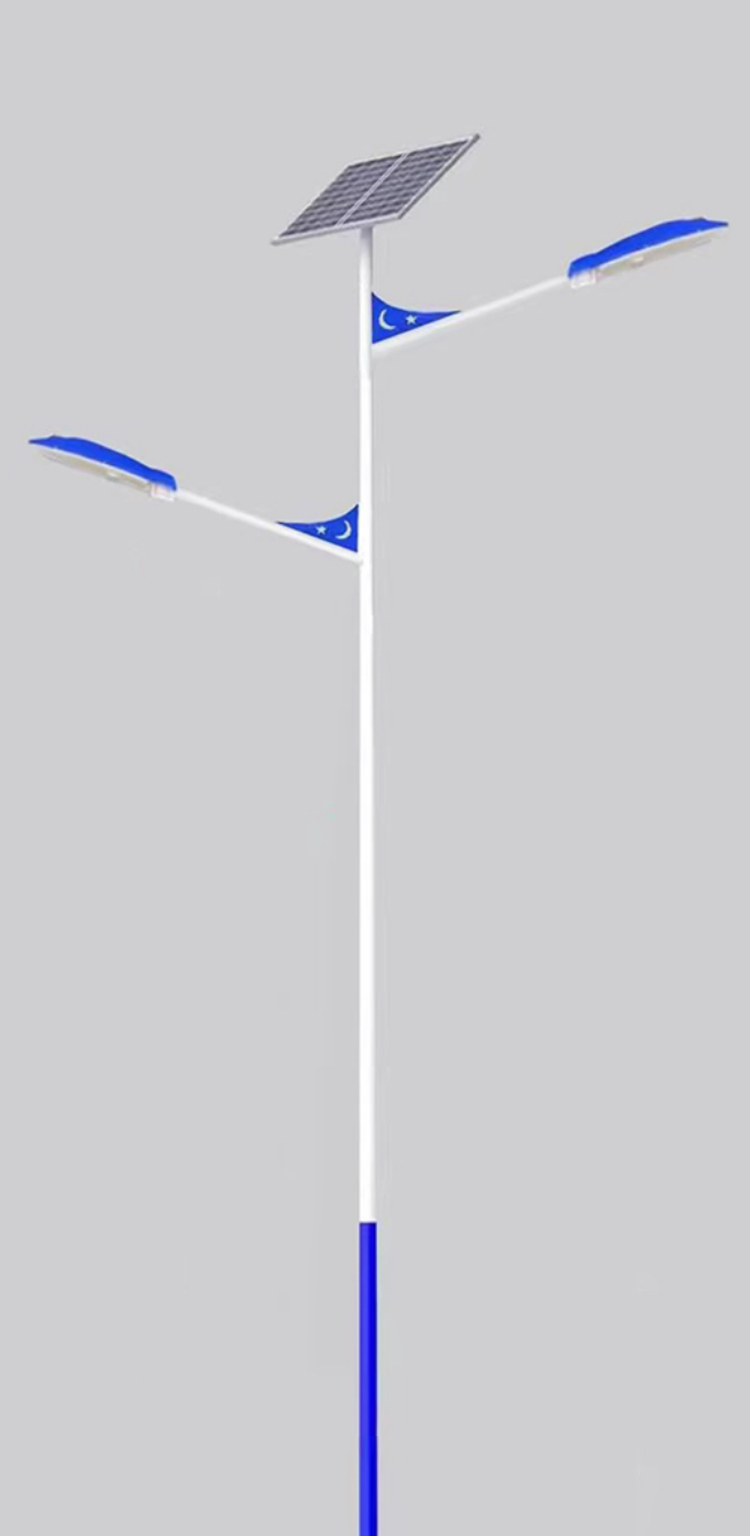 星月雙頭平臂 6米太陽能路燈,哈爾濱太陽能路燈,哈爾濱路燈生產基地,黑龍江金太陽光電,金太陽光電平房太陽能路燈廠